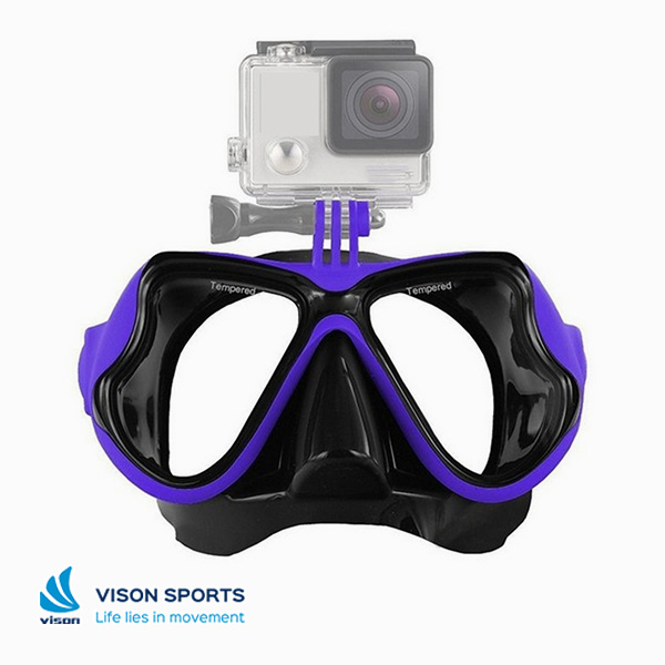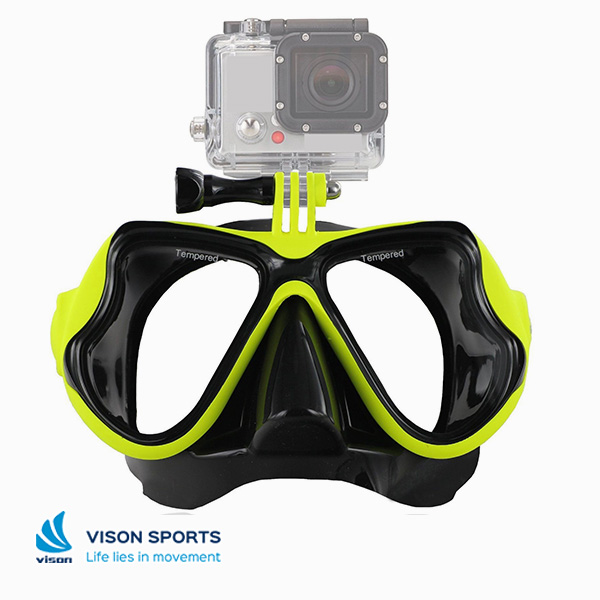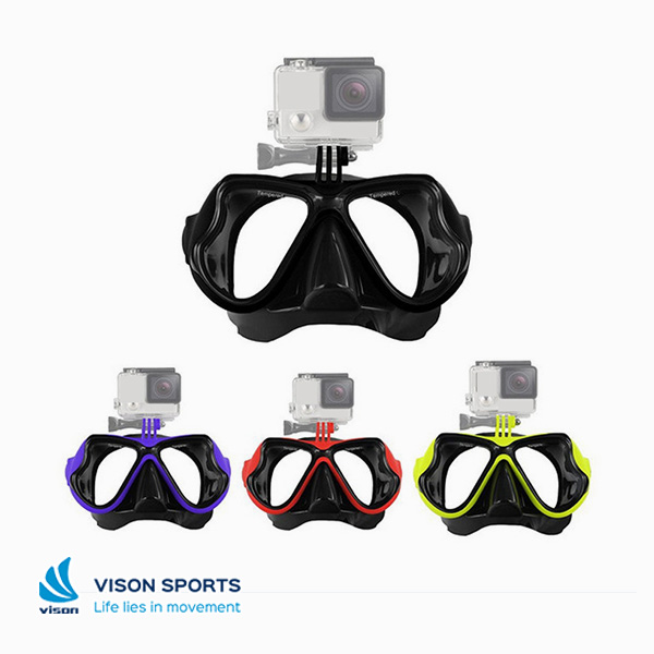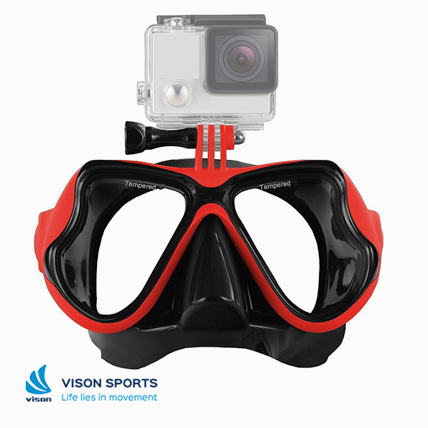 1) Anti-leak design; 2) Anti-fog design; 3) Detachable camera mount design; 4) 180 degree panoramic view; 5) Adjustable strape system. |
