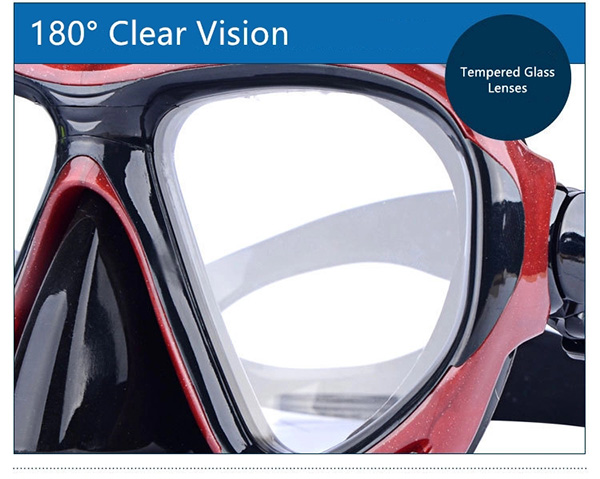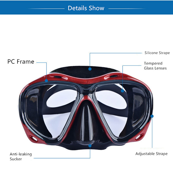 1) Anti-leak design; 2) Anti-fog design; 3) 180 degree panoramic view; 4) Adjustable strape system. |