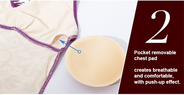 1) Anti-UV, Breathable, Nontoxic, Quick Dry 2) Removable Chest Pad, Wireless Bra
